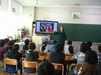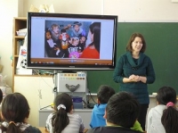 今日はレイチェル先生からカナダのハロウィンについて教えていただきました。ハロウィンのイベントが始まった由来や現在のカナダのハロウィンの様子を写真やビデオを通して学びました。子どもたちは外国の子どもたちの様子を興味津々で見ていました。
