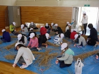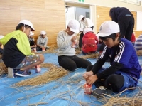 3、4年生が稲刈りをしました。子どもたちは稲の上手な刈り方を真剣に聞いて、上手にカマを使いながら稲を刈ることができました。刈った稲はわらでしばりました。やり方を教わりながら少しずつ上手にしばることができるようになりました。みんなで協力しながら約1時間半ほどかけてすべての稲を刈ることができました。子どもたちは稲刈りのたいへんさを実感しながらも、みんなで達成できた充実感を味わっていました。とてもよい経験ができました。