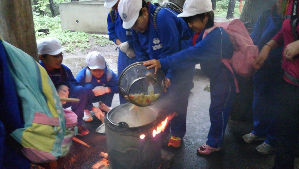 宿泊学習二日目も雨ですが,子どもたちは雨に負けずに元気いっぱい活動しています。