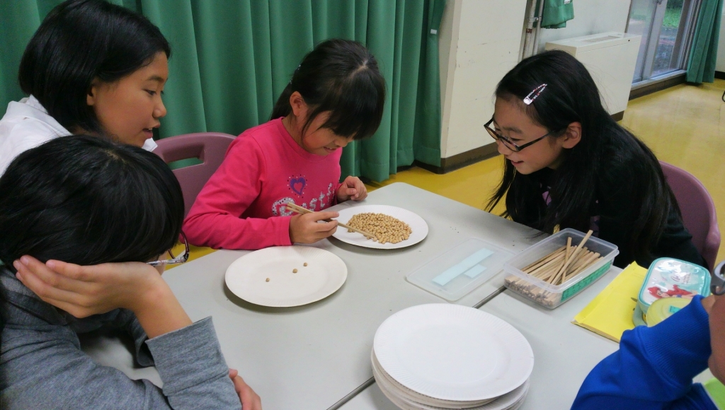 午後は『なすかしチャレラン』を行いました。これは班対抗のミニ競技大会で,子どもたちは缶積みや傘バランスなどユニークな8種類の競技を楽しみました♪夜は「熊撃ちの話」を聞く予定です。