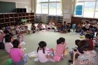 本日,湯本小学校のみなさんが大里小へいらっしゃいました。1~4年生は村体育館で行われた家庭劇場の劇を見てから,大里小で一緒にお弁当を食べたりゲームをして遊んだりしました。
