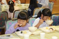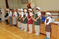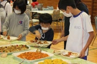 本日、子どもたちがとても楽しみにしていたバイキング給食がありました。子どもたちは赤・黄・緑の食品をバランスを考えながら選ぶことができました。給食を作ってくださる給食センターの方々や野菜を作っている農家の方々と一緒に食べました。たくさんの人々のおかげでおいしい給食を食べられることを実感し、感謝の気持ちを持つことができました。保健委員会のみなさんが中心となって進行したり、インタビューをしたりして楽しい時間を過ごせました。