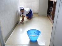 2015年9月24日 17時42分 10/2(金)の愛校作業へ向けて『水ぶき週間』が始まりました。愛校作業でのワックスがけに向けて各教室の床を水ぶきしたりスポンジたわしで汚れを落としたりしました。床の汚れを熱心に探して、一生懸命にぞうきんやたわしをこすって落としていました。また、上級生が下級生にぞうきんのしぼり方やぞうきんのかけ方を優しく教えている姿がとてもすばらしかったです。みんなで大里小をピッカピカにしていきます!