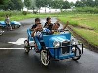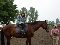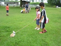 4年生が学年行事で岩瀬牧場へ行きました。初めはポニーのお世話をしました。優しくブラッシングをしたり、持参した人参をあげたりしました。ヤギやヒツジもいました。次に乗馬体験をしました。お馬さんの大きさに初めは驚いていた子どもたちでしたが、飼育員の方のお話を聞いて上手に乗ることができました。「止まれ」「進め」の合図も教えていただきました。次にうさぎの散歩をしました。うさぎのペースに合わせて楽しく散歩をしたりなでたりしながら癒しの時間を過ごしました。その他にもトロッコや自転車に乗ったり、ツリーハウスへ上ったりしました。家族みんなで楽しく過ごせました。