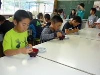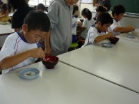 昼休みに保健委員会のみなさんが「豆つかみ大会」を行いました。はしを使ってお皿からお皿へ豆を移動させます。30個の豆を1分間で何個移動できるか競争しました。下学年の部、上学年の部、先生の部に分かれて挑戦しました。みんな一生懸命に豆をつかもうとがんばりました。正しいはしの持ち方でないとなかなかつかめませんでした。保健委員会から正しいはしの持ち方を教わったので、「これからも練習して正しい持ち方ではしが使えるようになりたい」との感想が聞かれました。