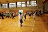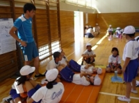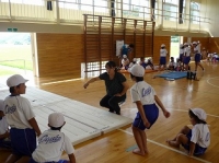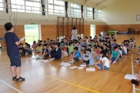 大里タイムに水泳壮行会を行いました。4年生が応援団となって会を進めました。5、6年生は選手紹介で名前を呼ばれると、一人一人大きな声で返事ができました。さすが高学年のお兄さん、お姉さんたちです。4年生の応援団が中心となって「フレー!フレー!大里!!」と元気なエールを送りました。また、応援歌も元気いっぱい歌いました。7/29(水)の村水泳大会では、ベストを尽くせるよう夏休みの練習もがんばって取り組ませたいと思います。