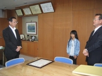 本日、村長さんと教育長さんへ努力賞受賞の報告に行きました。代表で保健委員長の6年児童が行きました。これからも健康な歯を守っていけるよう指導していきます。