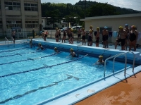 2015年7月21日 16時17分 午後から特設水泳の練習を行いました。大会で出場する種目も決まり、子どもたちは意欲満々で取り組んでいます。今日は返事の仕方やスタートの練習、応援の練習などを頑張りました。名前を呼ばれて、大きな声でハキハキと返事ができました。応援は「ガンバレ!」「大里!」と5、6年生が声を掛け合いながら元気よくできました。大会まで少しでも記録が伸ばせるよう指導していきたいと思います。