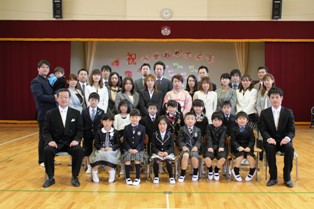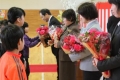 最後に花束が贈呈され、全校児童で先生方を見送りました。