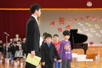 まず,はじめに校長先生から5年生の児童が代表で修了証書を受け取りました。次に,校長
