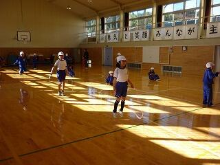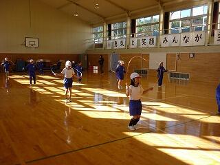 1・2年生は,体育館でなわとび運動をしていました。1年生は,まだあまり上手に跳べない児童が多いのですが,2年生はみな上手に跳んでいました。「1年間の経験の差は大きいなあ」と改めて感じました。1年生もたくさん練習していくと,きっと今よりも上手に跳べるようになりますよ。一生懸命,がんばってみましょう。