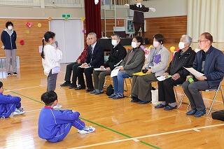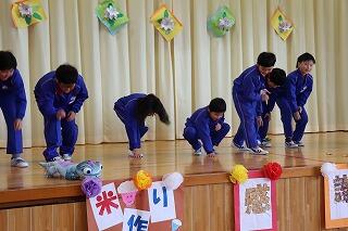 3・4年生が学校田の米作りでお世話になったみなさんをご招待して,「感謝の会」を開きました。児童を代表して高坂さんがお礼の言葉を述べました。そして,米作りの劇やダンス,歌などを披露しました。