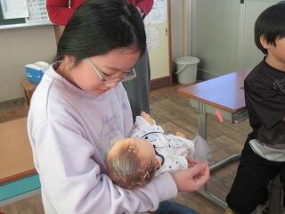 毎年5年生に行っている「命の教育」授業を実施しました。助産師の松本さんから「生命の誕生と思春期」についてお話をいただきました。命の誕生のしくみや,思春期の心のモヤモヤ感について学びました。赤ちゃんの人形を抱く児童の優しい表情が,とても印象的でした。