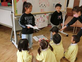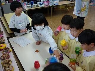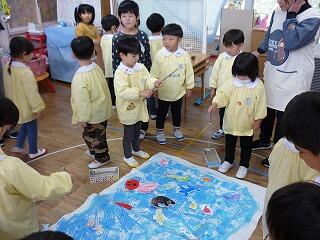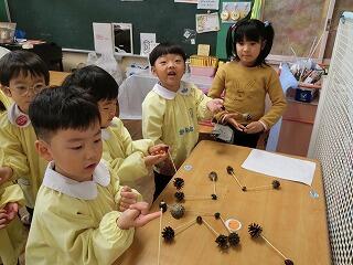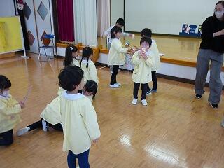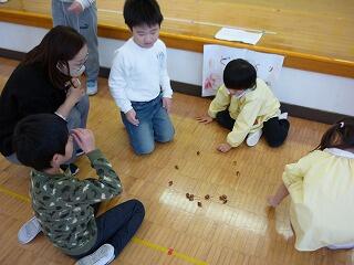 12月12日(木) 1・2年生が天栄幼稚園を訪問し,園児と交流してきました。12月2日の記事で遊び道具を作る様子を掲載しましたが,その本番当日だったわけです。準備した糸電話,マラカス,けん玉,どんぐりコマ,やじろべえ,コロコロ,ぴょんコップ,さかなつりなど,どのコーナーも園児に大人気で喜んで遊んでくれました。1・2年生のみなさんは,苦労して準備した甲斐がありましたね。