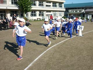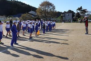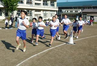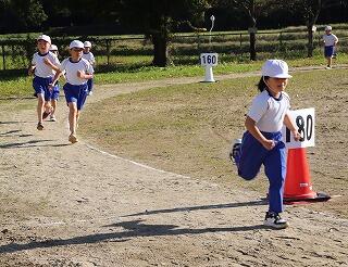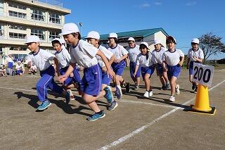 全校生を4回に分け,1回目は低学年,2回目は中学年,3回目は高学年A,4回目は高学年Bとしました。閉会式で児童に頑張り具合を尋ねてみたところ,自己ベスト記録を更新した児童が15人くらいおりました。本日の最高記録は,校庭6周1200メートルでした。足に自信のある児童も,そうでない児童も,一生懸命頑張ることができた持久走記録会となりました。