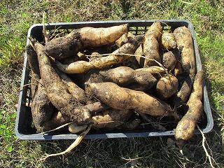 30分ほどで,5つのかごが山盛りになるほどのヤーコンを収穫することができ,児童は一人大小あわせて5本ずつ家に持ち帰ることができました。ご家庭でぜひご賞味ください。