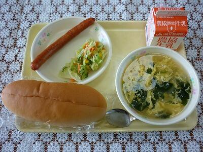 本日の給食は,背割れコッペパン,ウインナー,コールスローサラダ,たまごスープ,牛乳でした。