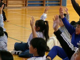 11月13日(水) 大里タイムで図書委員会によるクイズ大会を行いました。図書委員が1人1問ずつ図書に関する三択クイズを出し,児童みんなに答えてもらいました。楽しいクイズばかりで大いに盛り上がりました。