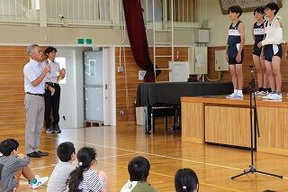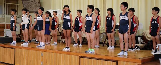 9月25日(水) 大里タイムで陸上大会壮行会を行いました。本校では5・6年生が選手として参加するので,応援などは4年生が中心となって行っています。1~4年生全員が力を合わせて,元気いっぱいの応援をしてくれました。