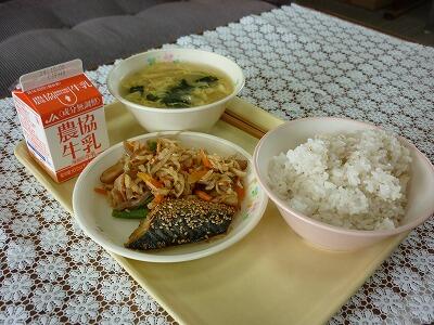 本日の給食は,麦ごはん,さばの南部焼き,切り干し大根のいため煮,かきたまみそ汁,牛乳でした。