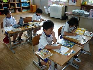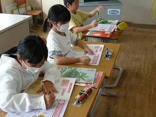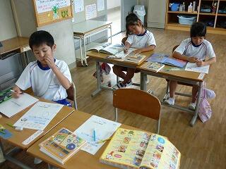 9月30日(月) 8月・9月と天栄村図書館から借りていた巡回図書を,返す期限が近づいてきました。各学年では返却の準備をしながら,児童全員が「おすすめの本の紹介」カードを書いています。見回ったときは,ちょうど1年生と6年生が書いていました。このカードは,後ほど天栄村図書館に展示される予定です。