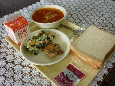 本日の給食は,食パン,鶏肉のハーブ焼き,ツナわかめサラダ,ミネストローネ,マーシャルビンズ,牛乳でした。