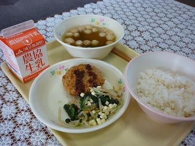 本日の給食は,ごはん,ホタテカツ,チーズあえ,すまし汁,牛乳でした。