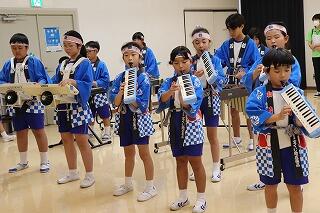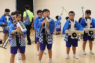 9月12日(木) 岩瀬地区小・中学校合奏祭が開催され,大里小はお馴染みの「丹波たて山わらし太鼓」を全校生で演奏してきました。リハーサルの時から音のまとまりがよく,本番では100点満点の発表ができました。演奏を終えた児童も,とても満足そうな表情でした。次回は,村の文化祭で発表します。