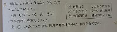 その後,何とか苦労して公倍数を見つけた児童が現れました。その公倍数をさらに時刻に変換しなければ,この問題の答えにはたどり着けません。