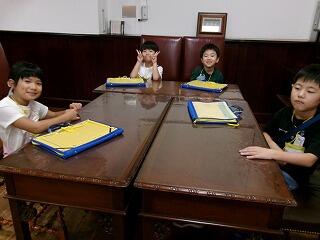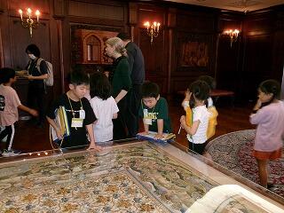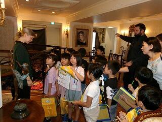 9月13日(金) 1年生が異文化体験学習で,ブリティッシュヒルズに行ってきました。各学年が訪問するのですが,1年生は初めてなので,まず館内を案内していただきながら,簡単な英会話を学習しました。