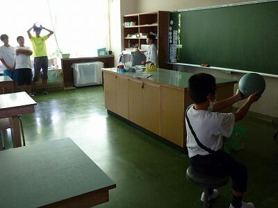 今日は,6年生が太陽と月と地球の位置関係を実験しながら「なぜ月の見え方が変わるのか」を調べていました。