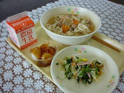本日の給食は,けんちんうどん,いろどりあえ,お月見だんご,牛乳でした。