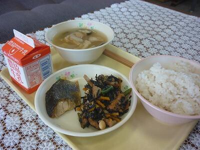 本日の給食は,麦ごはん,ほっけの塩焼き,ひじきいため,なすとじゃがいものみそ汁,牛乳でした。