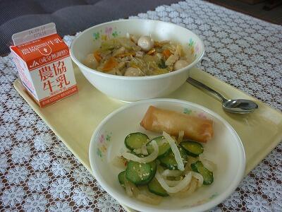 本日の給食は,中華丼,春巻き,きゅうりのピリ辛あえ,牛乳でした。