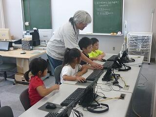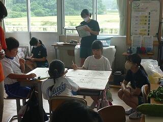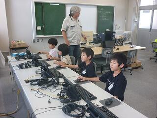 9月6日(金) 1年生のパソコン教室を3・4校時に行いました。「どりーむ・ふぉれすと」の森さんから,パソコンの基本的な使い方から教わりました。慣れてきたところで,お絵かきソフトを使って好きに絵を描き,最後に印刷までしました。