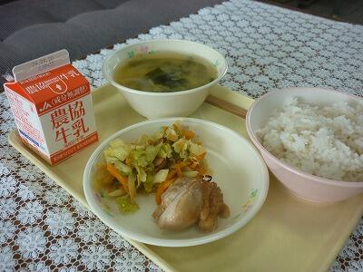本日の給食は,麦ごはん,鶏肉の照り焼き,野菜のカレーソテー,豆腐とわかめのみそ汁,牛乳でした。