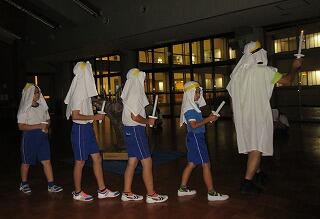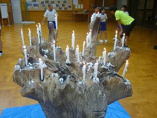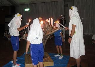 9月2日(月) 修学旅行・宿泊学習の宿の「いわき海浜自然の家」に到着。夜の活動は,キャンプファイヤーの予定でしたが,雨の予報ということで,室内でのキャンドルファイヤーに変更となりました。