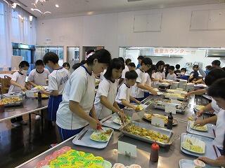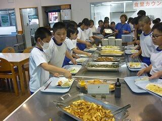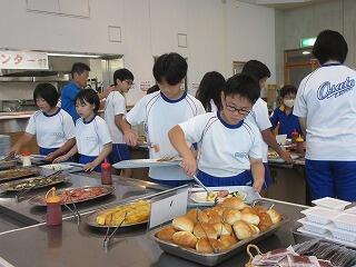 基本的にはバイキング形式で(一部の品は個数制限あり),自分の好きな物がたくさん食べられます。お腹が痛くなるほど食べる児童がいないか心配しましたが,大丈夫,みなさんお利口でした。