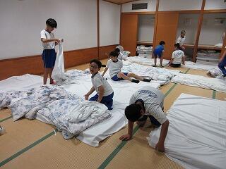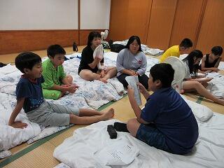 部屋では,自分で布団の準備をしてのんびり過ごしました。班での反省会もあり,明日の活動の打ち合わせなどをしました。午後10時には消灯,おやすみなさい。
