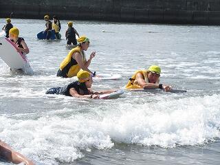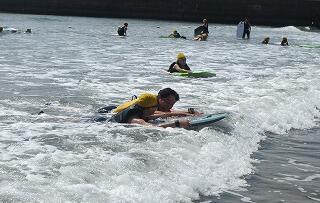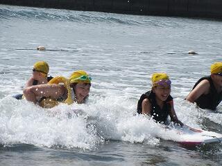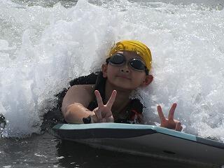 天気がよすぎて,波が昨日より小さくなってしまったのは残念でしたが,初めてのボディボードをみんなで安全に楽しむことができました。自然の家に帰るとお風呂で塩水を流しました。