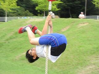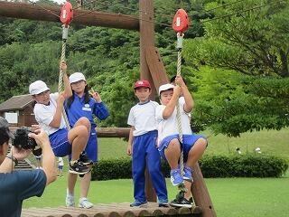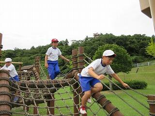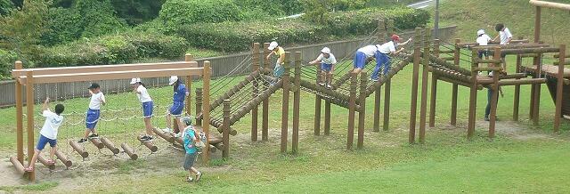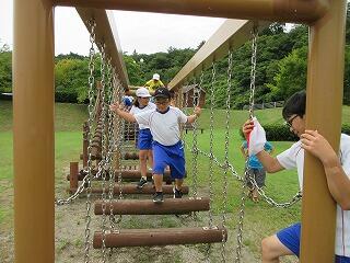 最後の活動は,バス出発までの1時間ほどアスレチックで遊びました。