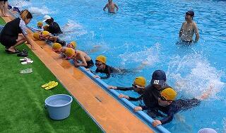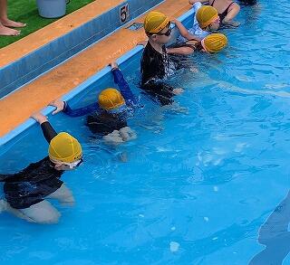 7月18日(木) 1・2年生の水泳学習の3回目,今日は湯本小プールを借りての実施となりました。回数を重ねるほどに水にも慣れてきた児童が増え,浮くことや潜ることができるようになってきました。