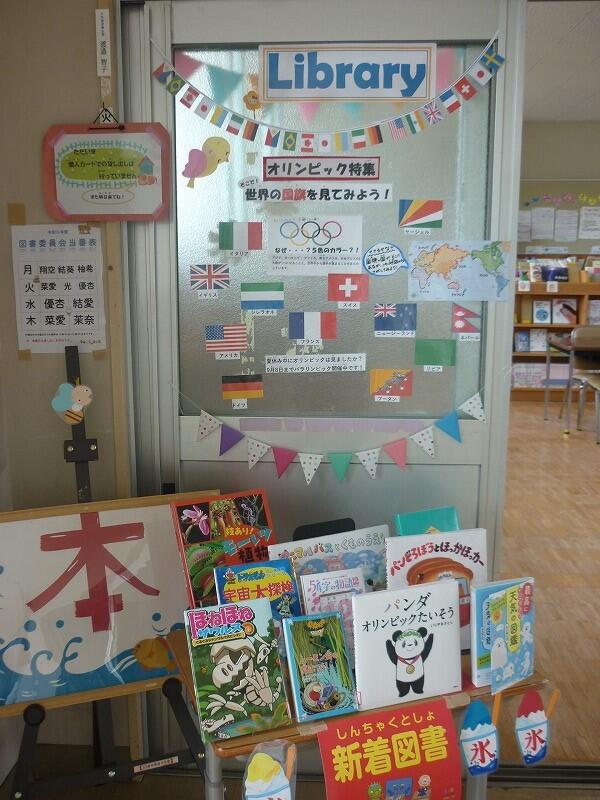 新刊図書の中には,オリンピックに関した本も数冊ありました。2学期が始まったら,またたくさんの児童のみなさんに読んでもらいたいです。