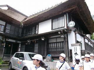 学校混合の4班を作り,まずは湯本地区を散策しました。観音堂,薬師寺,神社,温泉宿,棚田など,詳しく説明していただきながら歩きました。