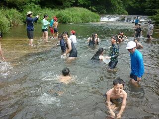 午後は,川遊びで平滑に移動しました。川の水は少し冷たかったですが,児童は元気に川遊びを楽しみました。中には安全な少し深い所で泳ぎ始める児童もいました。去りゆく夏を楽しむことができた一日でした。