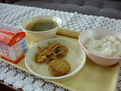 キムタクごはん,ごぼうと裂きイカのサラダ,たまごスープ,ソーダゼリーでした。