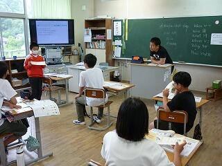 6年生は,週末の過ごし方について,1人ずつ英語でスピーチしていました。それに対して質問するのも,もちろん英語です。