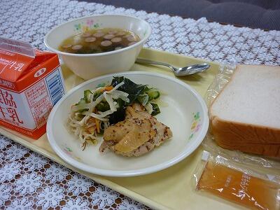 6月18日(火) 本日の給食は,食パン,鶏肉のハニーマスタード焼き,海藻サラダ,ウインナーと野菜のスープ,県産ももジャムでした。