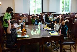 6月19日(水) 天栄村4小学校の4年生がブリティッシュヒルズに集まり,英語体験学習を2コマ・80分間行いました。英語学習に役立ったのは勿論ですが,天栄中学校に進学するときの仲間づくりにも生かせたと思います。