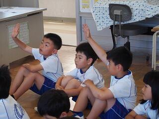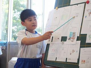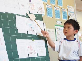 6月19日(水) 1・2年生が,先日行った学校たんけんの発表会を行いました。「職員室には鍵がいっぱいあってすごい。」とか,「校長室のソファーはフカフカしている。」など,子どもらしい気づきがありました。